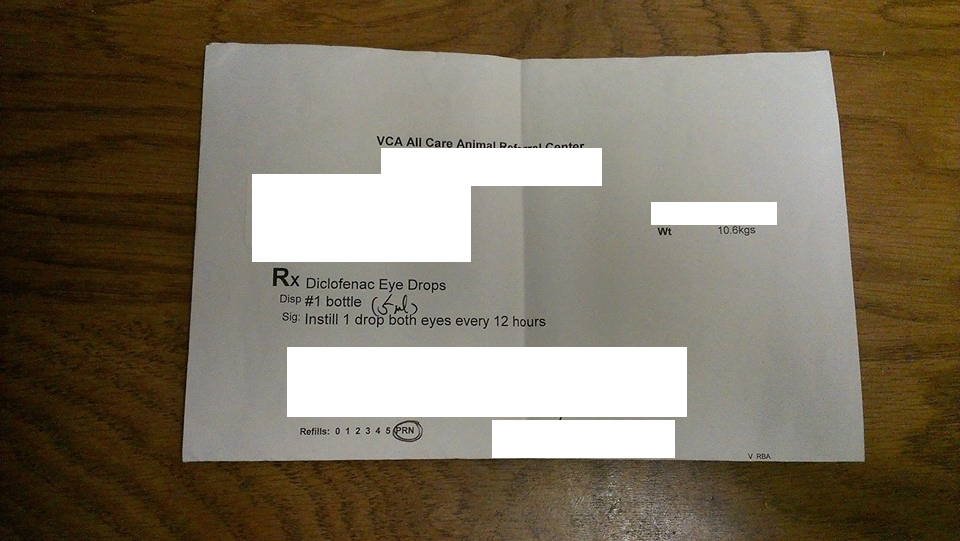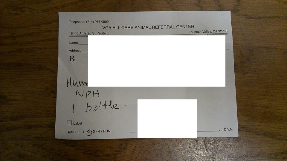 上面這張是眼藥水,而下面這張是胰島素,由獸醫師開出處方,交由藥師進行重新配製。