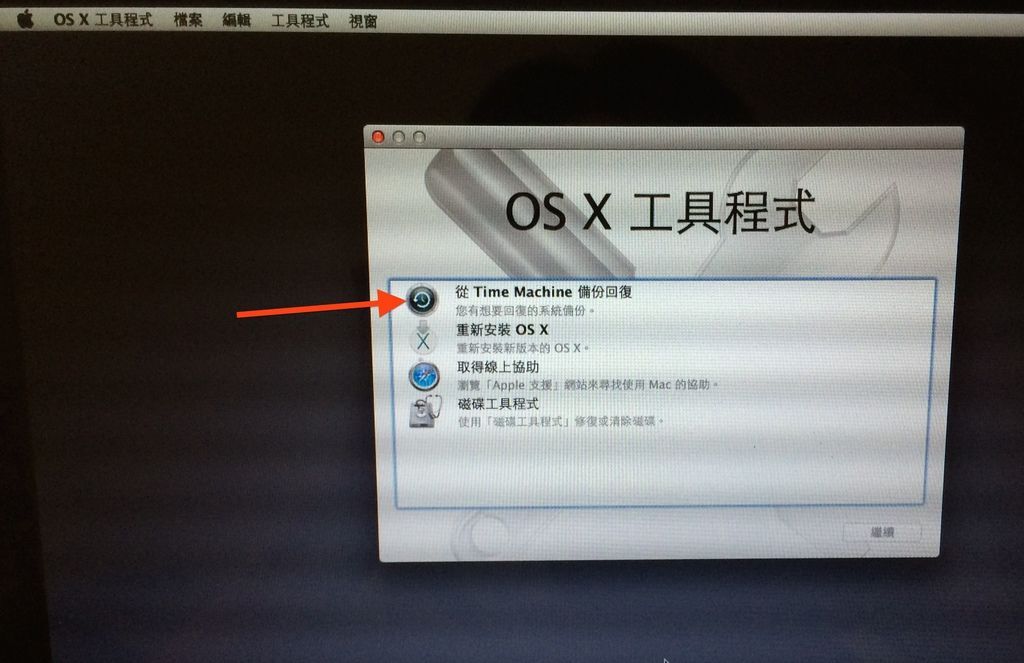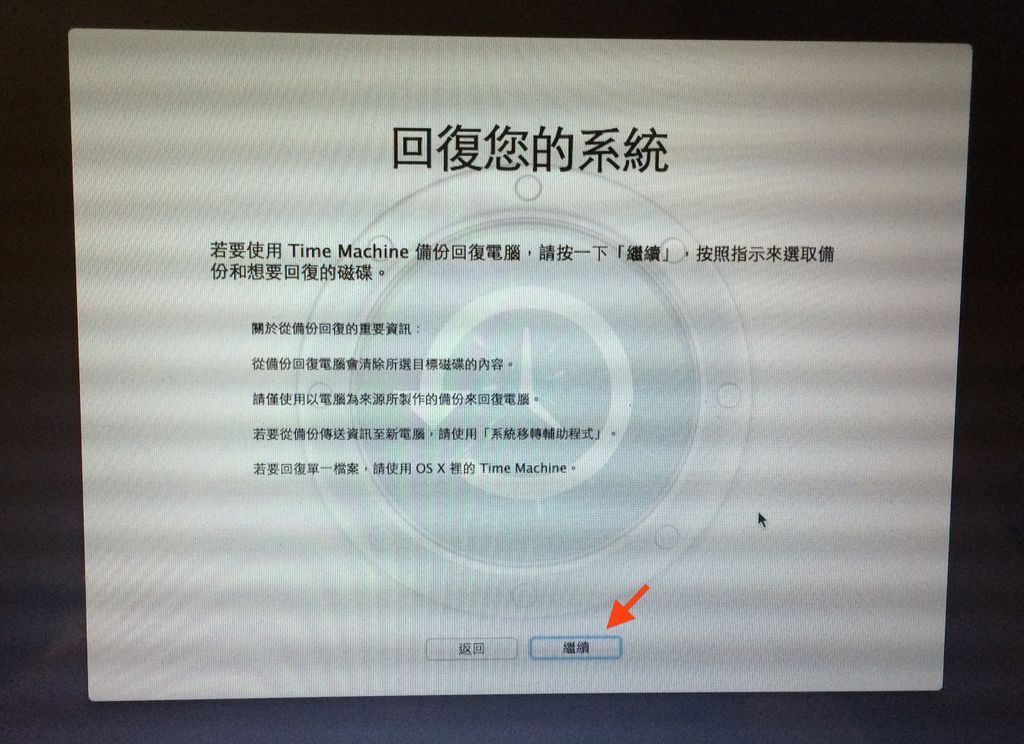 你也只能按「繼續」,然後選擇你要回復的磁碟