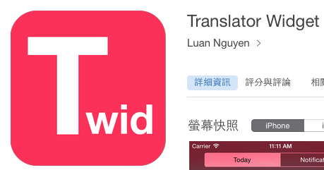 Translator Widget 翻譯小工具 for IOS AppStore下載點:http://goo.gl/ODbLeR