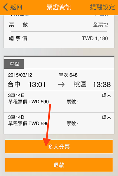 進入取票畫面之後,如果是兩張以上,就會出現分票功能